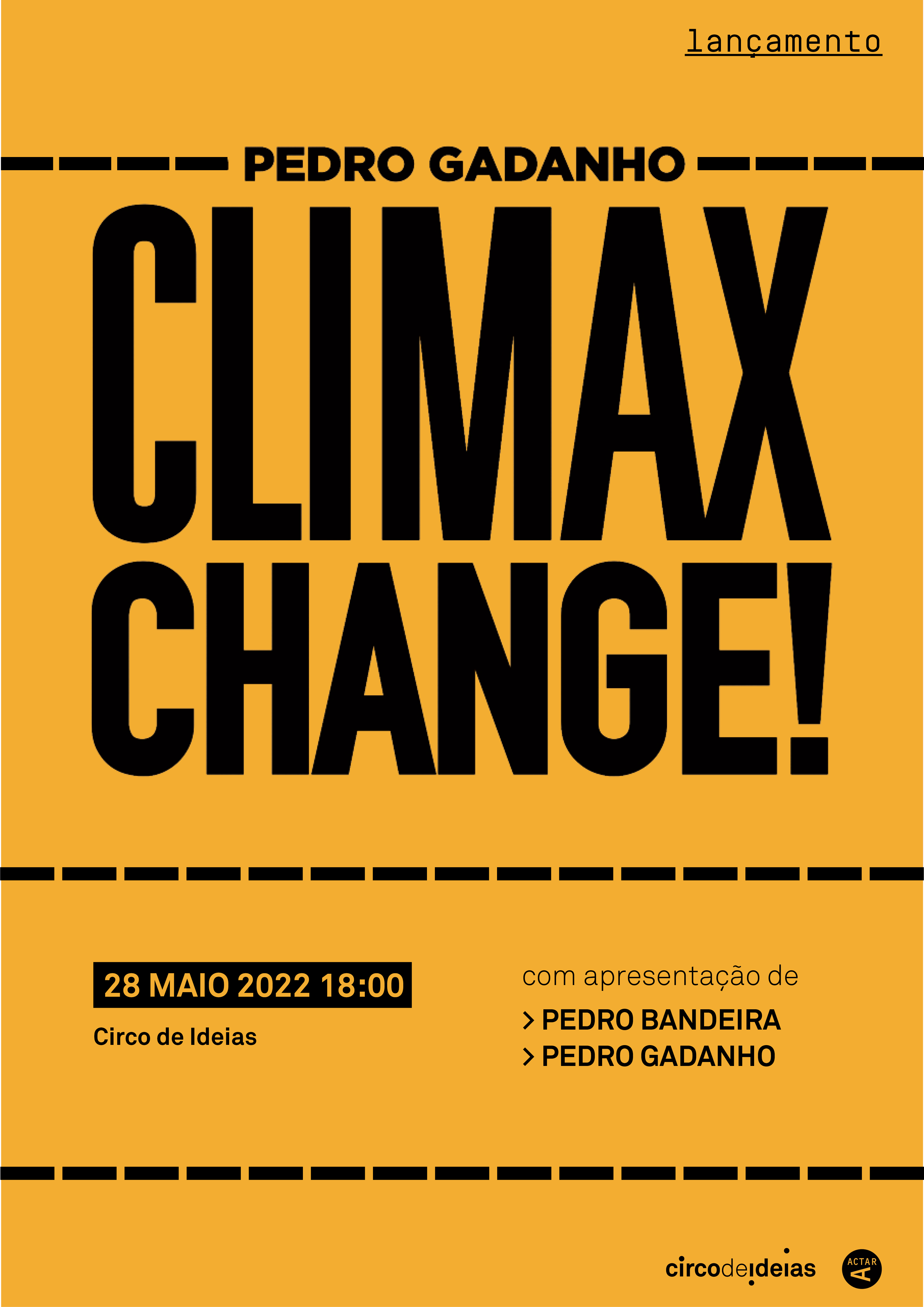 O livro «Climax Change!», com autoria de Pedro Gadanho, foi apresentado na Circo de Ideias, com uma conversa entre Pedro Bandeira e o autor, no dia 28 de Maio, sábado, às 18:00.